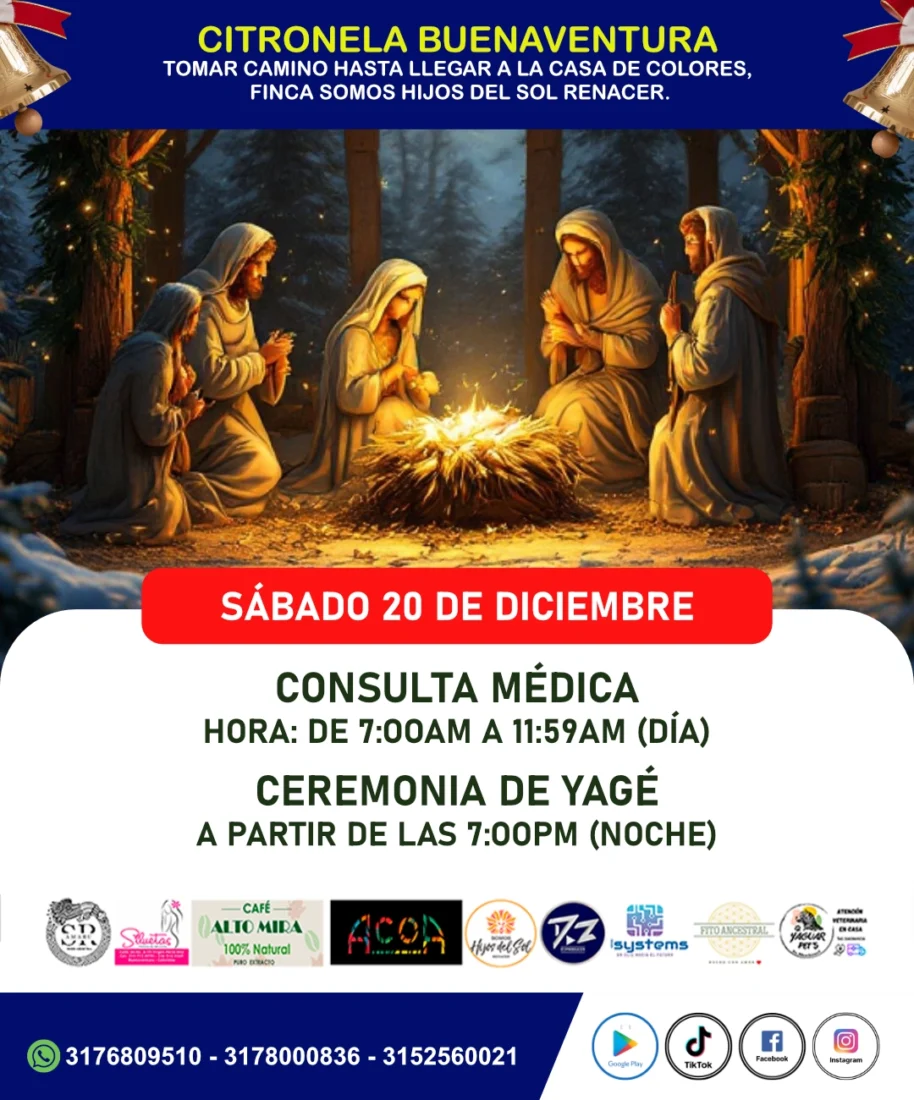Te invitamos a cerrar el año con salud y conexión espiritual en Citronela Buenaventura. Únete a nosotros en la Casa de Colores, Finca Somos Hijos del Sol Renacer para una jornada especial dedicada al bienestar del cuerpo y el espíritu.